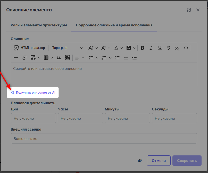 Эта функция вызывается в меню подробностей задачи - нажать на кнопку "Получить описание от AI"