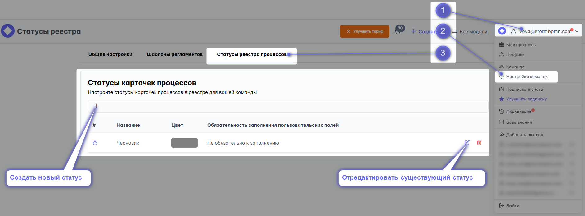 Перечень статусов карточки можно дополнять, радактировать - это доступно админу команды в разделе Настройки команды