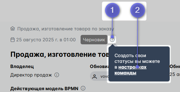По умолчанию, при создании карточки процесса она имеет статус "Новый".