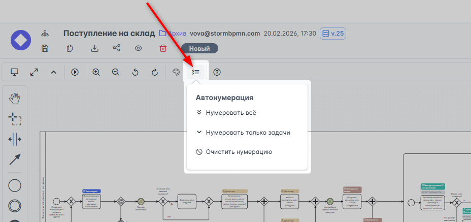 Функция автонумерации доступна нажатием на одноименную кнопку в верхнем меню