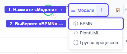 Выберите тип BPMN.