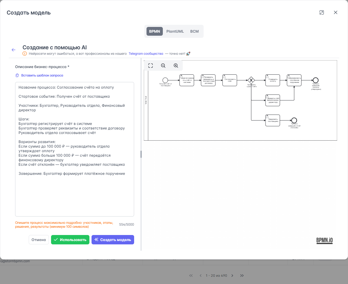Создание диаграммы BPMN с помощью AI